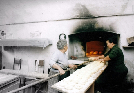 Un tempo il pane si faceva nelle case e la sua preparazione richiedeva lavoro e fatica fin dal giorno precedente. Innanzitutto bisognava essersi prenotati con anticipo presso il fornaio, il quale stabiliva l’ora e il giorno, poi ci si doveva procurare il lievito, un po’ di pasta molle e mezza acida, da restituire dopo tutta l’operazione a chi lo aveva prestato. La mia nonna materna era una prestatrice di questo ingrediente e lo dava solo a chi voleva lei. Una catena impegnava i ragazzi di casa nella ricerca e nella riconsegna della ciotola contenente il prezioso impasto.